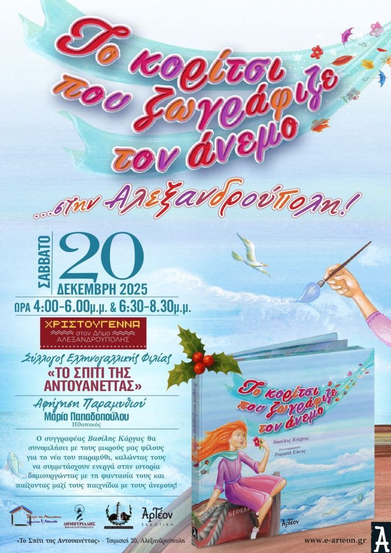 Υποδεχόμαστε στον Σύλλογο Ελληνογαλλικής Φιλίας «Το Σπίτι της Αντουανέττας» τον συντοπίτη συγγραφέα κ. Βασίλη Κάργα σε μια βιωματική παρουσίαση του παραμυθιού του ” Το κορίτσι