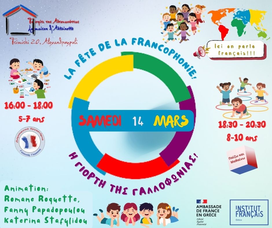 Με αφορμή τον μήνα της Γαλλοφωνίας, τα εκπαιδευτικά προγράμματα του Σαββάτου 14 Μαρτίου 2026 στο Σπίτι της Αντουανέττας θα είναι αφιερωμένα στη γαλλική γλώσσα και στον γαλλόφωνο κόσμο.