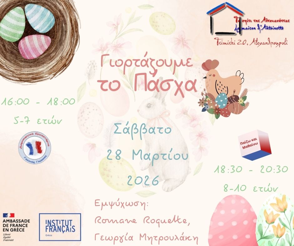 Το Σάββατο 28 Μαρτίου, σας περιμένουμε στο «Σπίτι της Αντουανέττας» στο πασχαλινό μας ατελιέ: