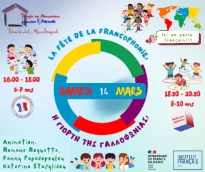 Το Σάββατο 14 Μαρτίου, στα δημιουργικά εργαστήρια του Συλλόγου μας, γιορτάσαμε την ημέρα της Γαλλοφωνίας. Η Διεθνής Ημέρα Γαλλοφωνίας καθιερώθηκε το 1998. Πρόκειται για μια ημέρα κατά την οποία γίνονται δράσεις για να διαδοθεί η έκταση χρήσης της γαλλικής γλώσσας, για να εξοικειωθούν μικροί και μεγάλοι με το σε πόσα πολλά μέρη του κόσμου μιλιούνται